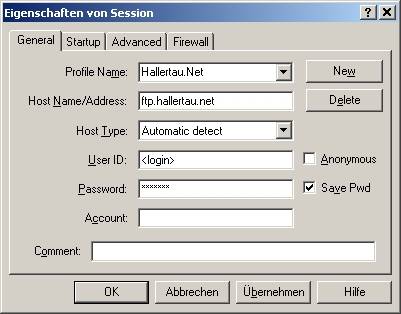 Im FTP-Client muss ein FTP-Server angegeben werden: